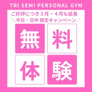 日頃よりTRIセミパーソナルジムをご利用いただきまして誠にありがとうございます。 【2月平日日中限定】無料体験キャンペーン開催中!...
